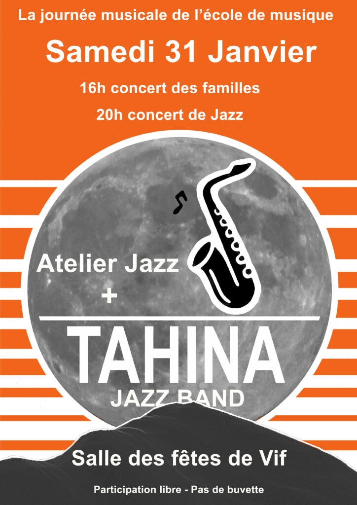 - A 20h , concert de jazz avec l’atelier jazz de l’AMV suivi du fameux Tahina Jazz Band, dirigés par Sébastien Comito !